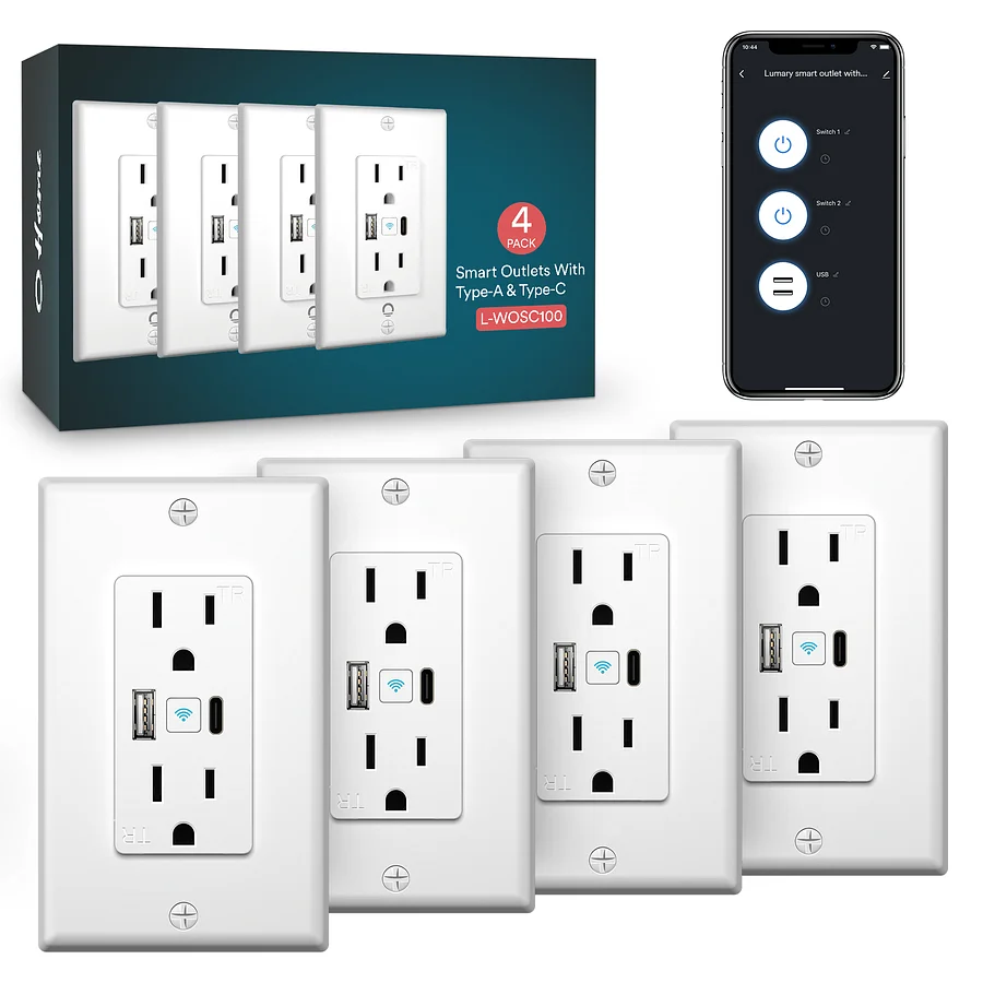 - Included Components: Lumary Smart In-Wall Outlet *4 (3-prong, two sockets, two USBS), front wall plate, user manual